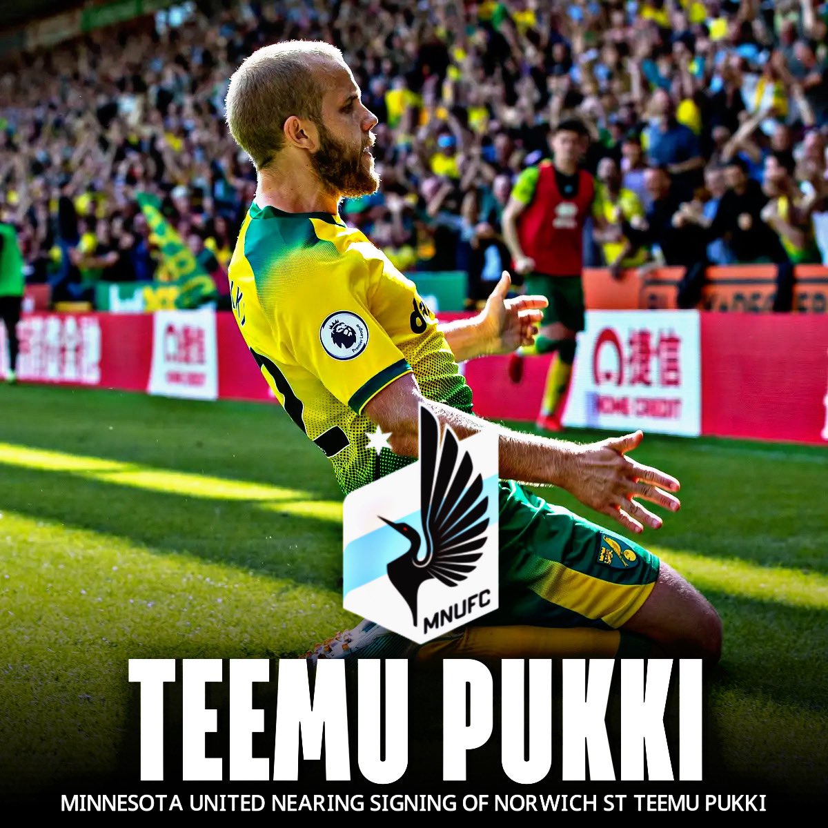 Teemu Pukkia viedään Yhdysvaltoihin. Huuhkajien tähtihyökkääjä on yhdistetty Minnesota Unitediin maajoukkuetoverinsa Robin Lodin seurakaveriksi.