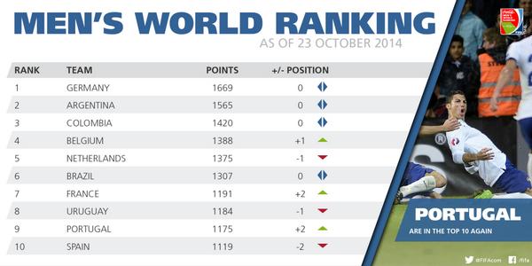 FIFA/Coca-Cola #WorldRanking: Germany remain top, but plenty of movement elsewhere - fifa.to/1tiW5hg