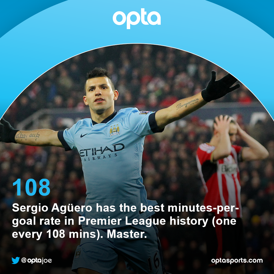 Kun katsotaan Valioliigan kaikkien aikojen tilastoa maalien ja pelattujen minuuttien suhteen, on Aguero jopa paras.