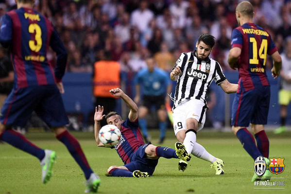 Italialaisseura nousi kuitenkin toisen jakson alussa tasoihin Real Madrid -kasvatti Alvaro Moratan maalilla. Tilanne käynnistyi kun Juventuksen keskikenttämies Claudio Marchisio lähetti laitapakin Stephan Lichsteinerin laidalta irti. Sveitsiläinen keskitti Carlos Tevezille, jonka matalan vedon Barca- vahti Marc-Andre ter Stegen torjui, mutta Morata oli ensimmäisenä irtopallossa.