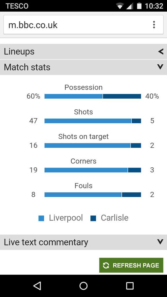 Liverpool hallitsi peliä, mutta peli antoi täyden kuvan joukkueen maalinteko-ongelmista. BBC:n statistiikan mukana Liverpool laukoi peräti 47 (!) kertaa ottelussa.