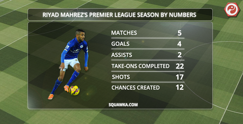 Ranskalaissyntyinen Algerian maajoukkuemies on tehnyt neljä maalia ja antanut kaksi maalisyöttöä tähän mennessä, kun Leicester on kärkikahinoissa. Joukkue on parhaillaan Valioliigassa toisena 11 pisteellä neljä pistettä voitosta voittoon edenneen Manchester Cityn perässä ja pisteen edellä ManU:a ja Arsenalia.