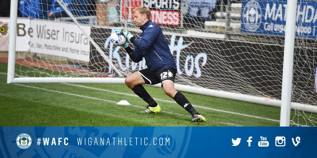 DEBUT: Jussi Jaaskelainen warming up at the DW Stadium ahead of his Latics debut this afternoon. #wafc