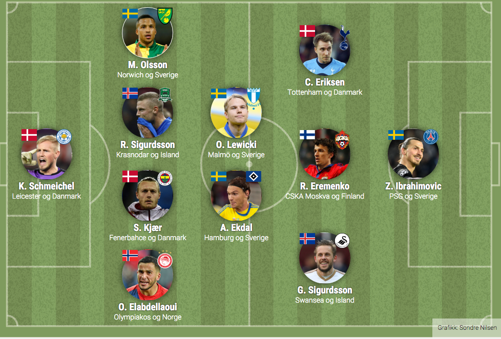 Here's @vgnett annual "Nordic Team of the Year" Including, @kschmeichel1, @simonkjaer1989 & @ChrisEriksen8