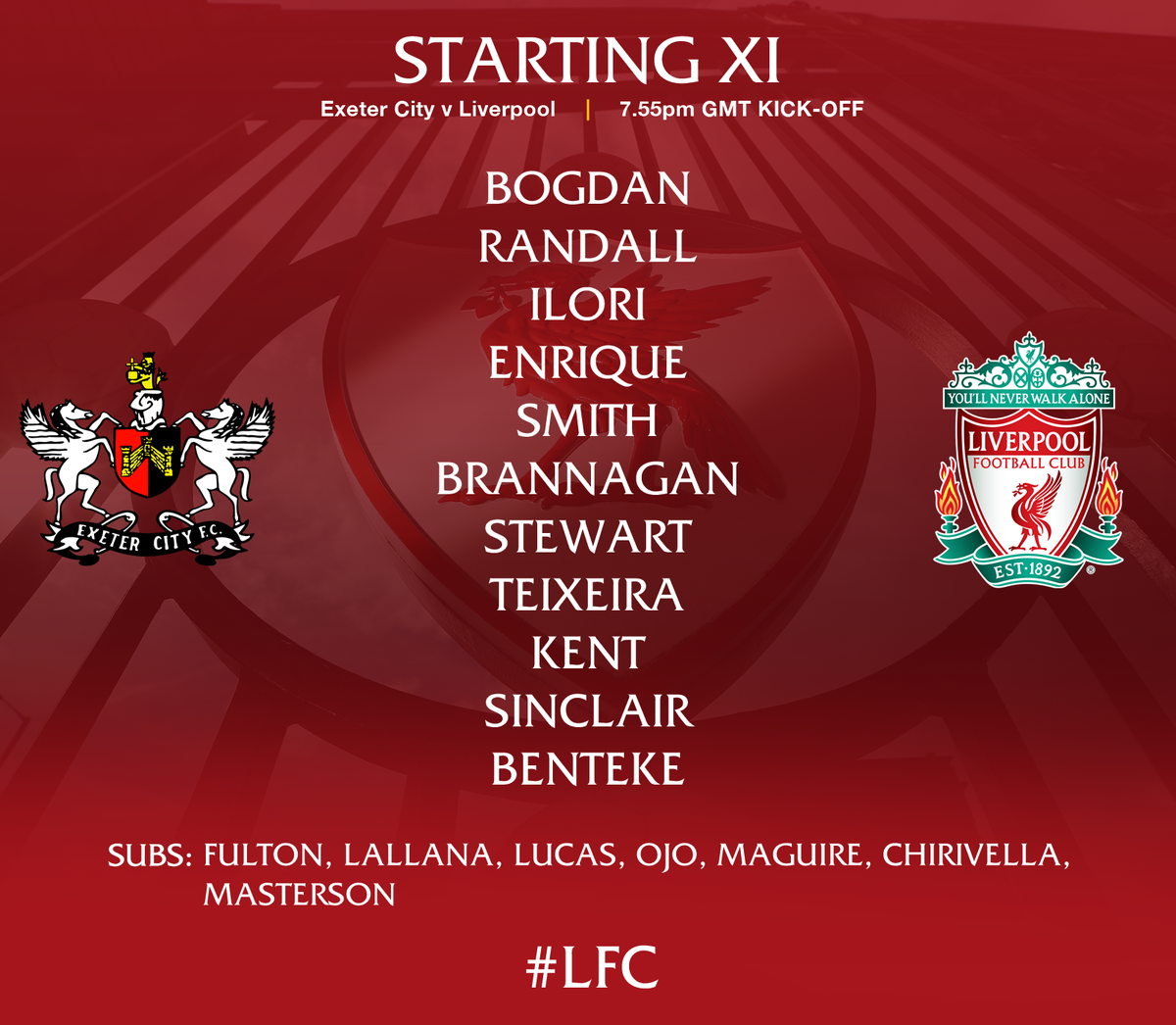 Liverpoolin illan avausmiehistössä oli tukku outoja nimiä ainakin niille, jotka eivät seuraa ole tarkemmin seuranneet. Avauskokoonpano oli pelannut yhteensäkin vain 34 edustusjoukkueen peliä tällä kaudella ja näistä 21 peliä oli Christian Benteken nimissä. Liverpoolin maaleista vastasivat Jerome Sinclair ja Brad Smith.