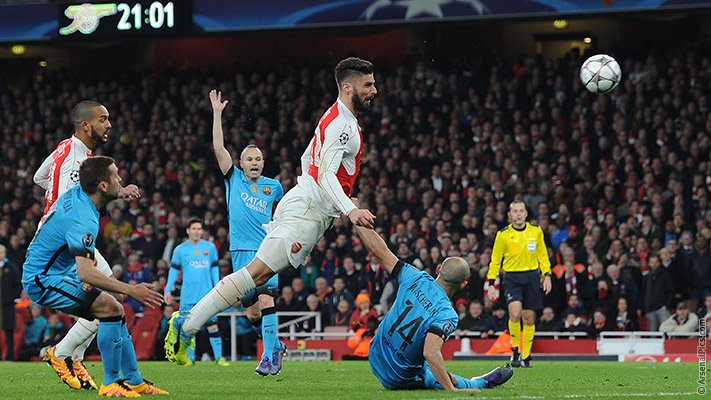 Saksalaisvahti säilytti tuolloin tilanteen 0-0:ssa ja seuraavasta hyökkäyksestä Barcelona iski voittomaalinsa. Arsenalin tilanteessa Giroud puski alakulmaa kohti, mutta voimaa ei ollut tarpeeksi ja ter Stegen ehti torjuntaan. Tilanteessa Barca-toppari Javier Mascherano roikkuu selvästi Arsenal-kärjen paidassa, mutta hyökkääjä ei lähtenyt tällä selittelemään.