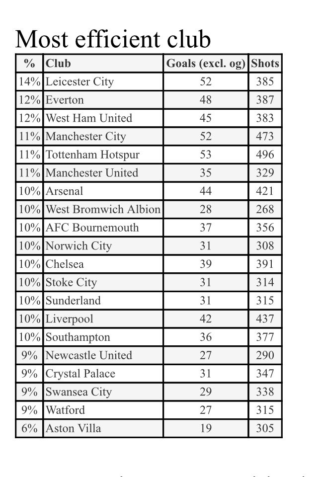 Leicester City scoring from 14% of their shots, by far highest in the @premierleague (via @InfostradaLive round-up)