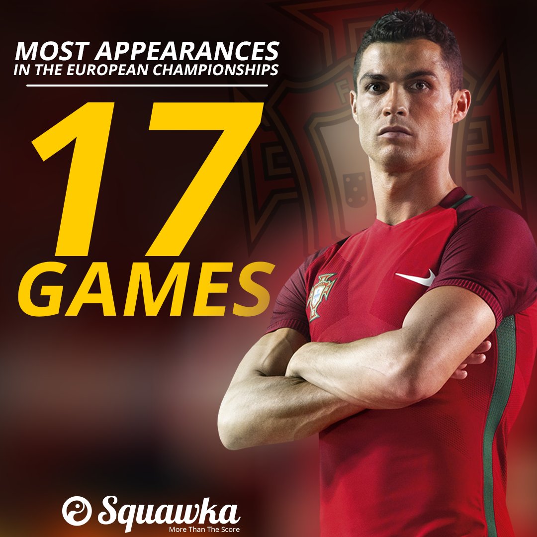 RECORD: Cristiano Ronaldo has made 17 appearances at European Championship finals, the most of any player ever.