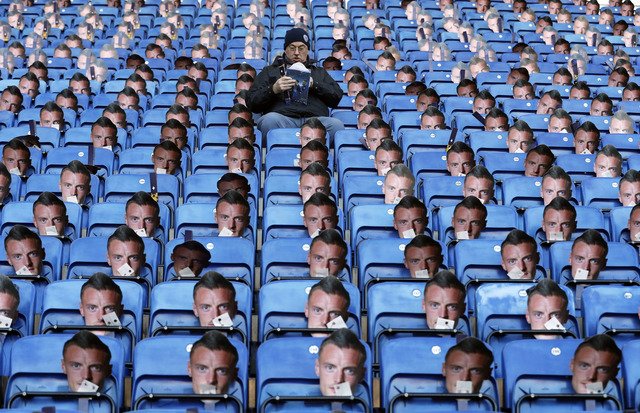 Katso kuva: Leicesteriltä erikoinen protesti – tähtipelaajan naamari jokaisella penkillä