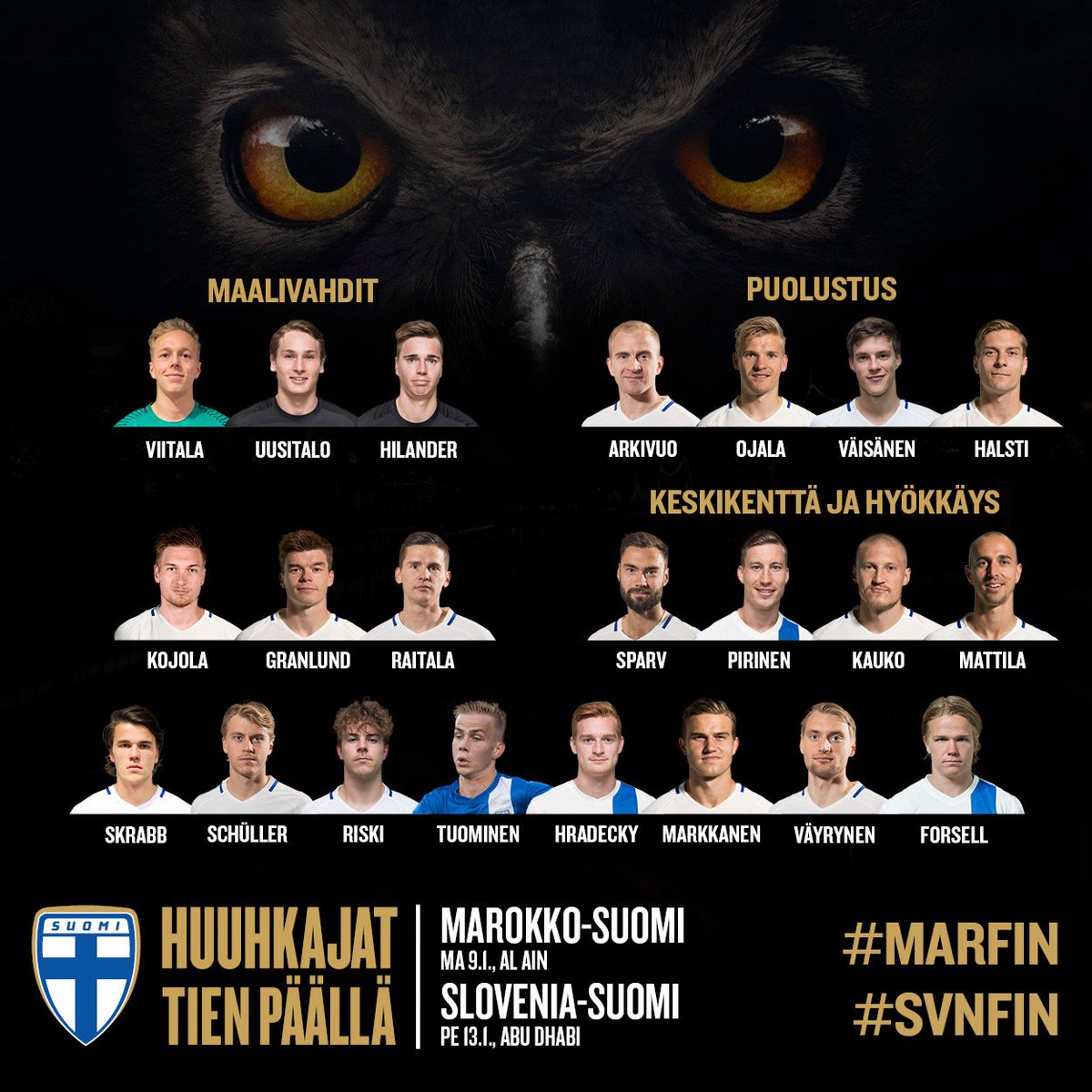 Päävalmentaja Markku Kanerva on nimennyt joukkueensa tammikuun leirille Abu Dhabiin. #Huuhkajat