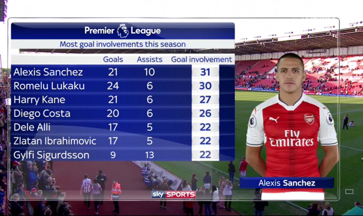 A goal & an assist for Alexis Sanchez v Stoke - now the leading player in terms of goal involvement in the PL this season