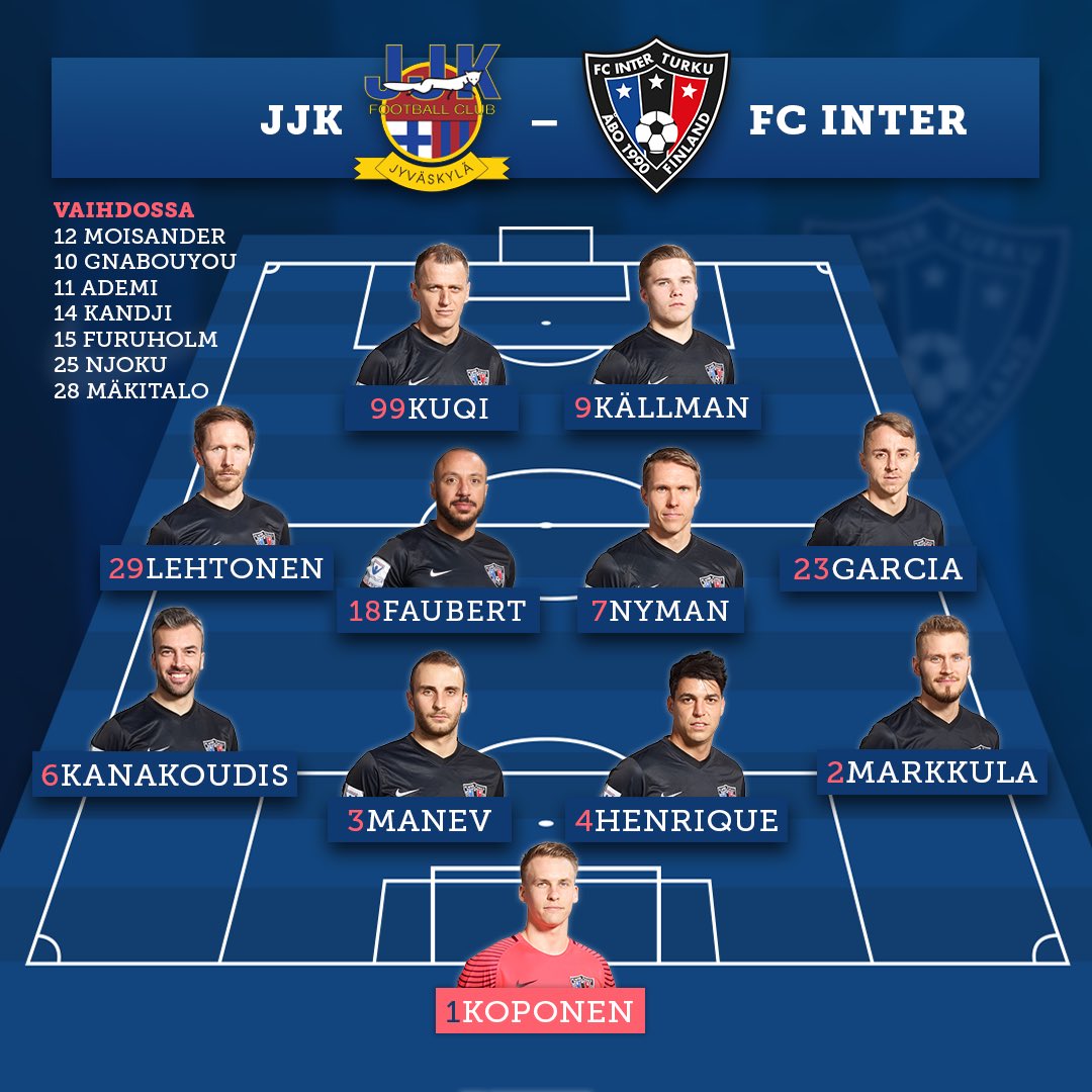 Tällaisella kokoonpanolla lähdetään tänään jyväskyläläisten kimppuun klo 17.00 alkaen! #fcinterturku #veikkausliiga