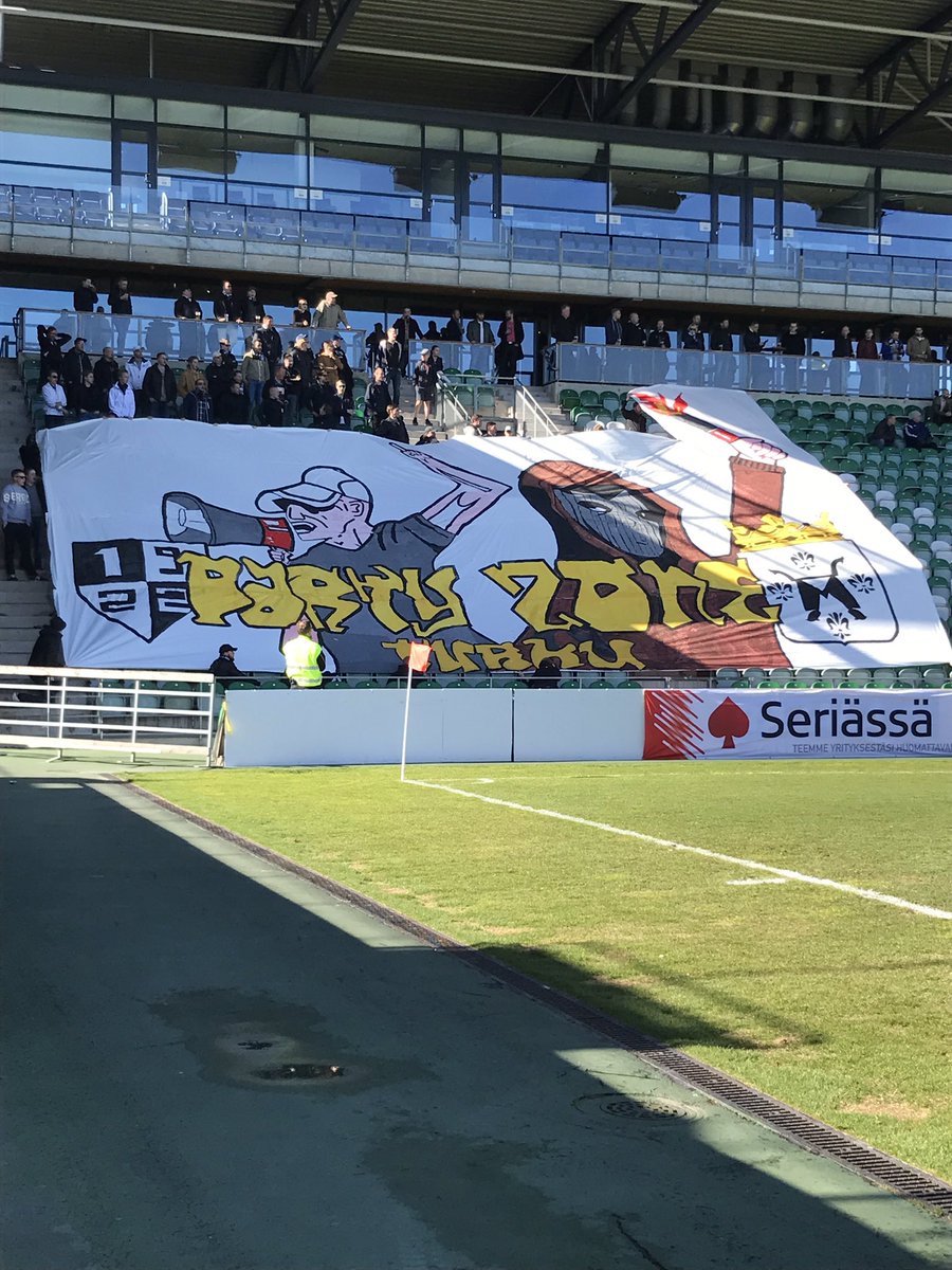 Hongan pelissä KPV:tä vastaan taas faneilla oli hauskaa savujen keskellä ja lippujen liehuessa. Katso tästä tai alhaalta.