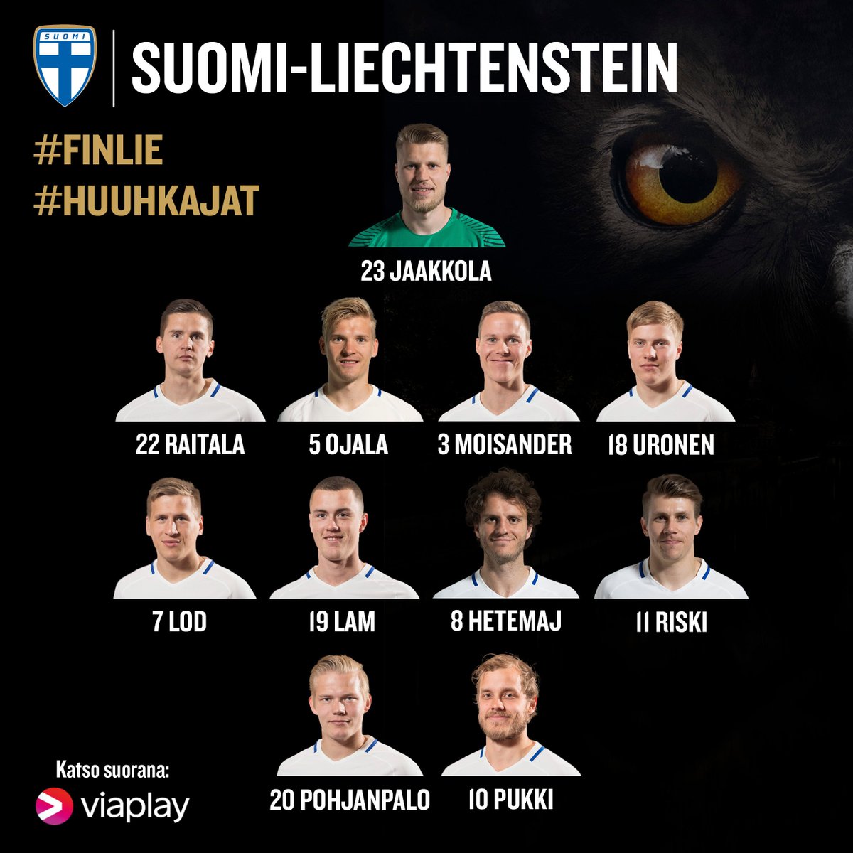 Markku Kanerva on nimennyt Suomen avauskokoonpanon klo 19.00 alkavaan A-maaotteluun Liechtensteinia vastaan. #FINLIE #huuhkajat