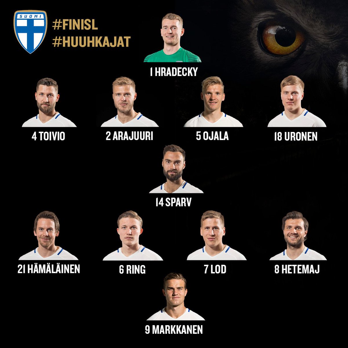 Tällä ryhmällä Huuhkajat avaa Islantia vastaan. Suomi-Islanti alkaa loppuunmyydyllä Ratinan stadionilla klo 19.00! #FINISL #Huuhkajat