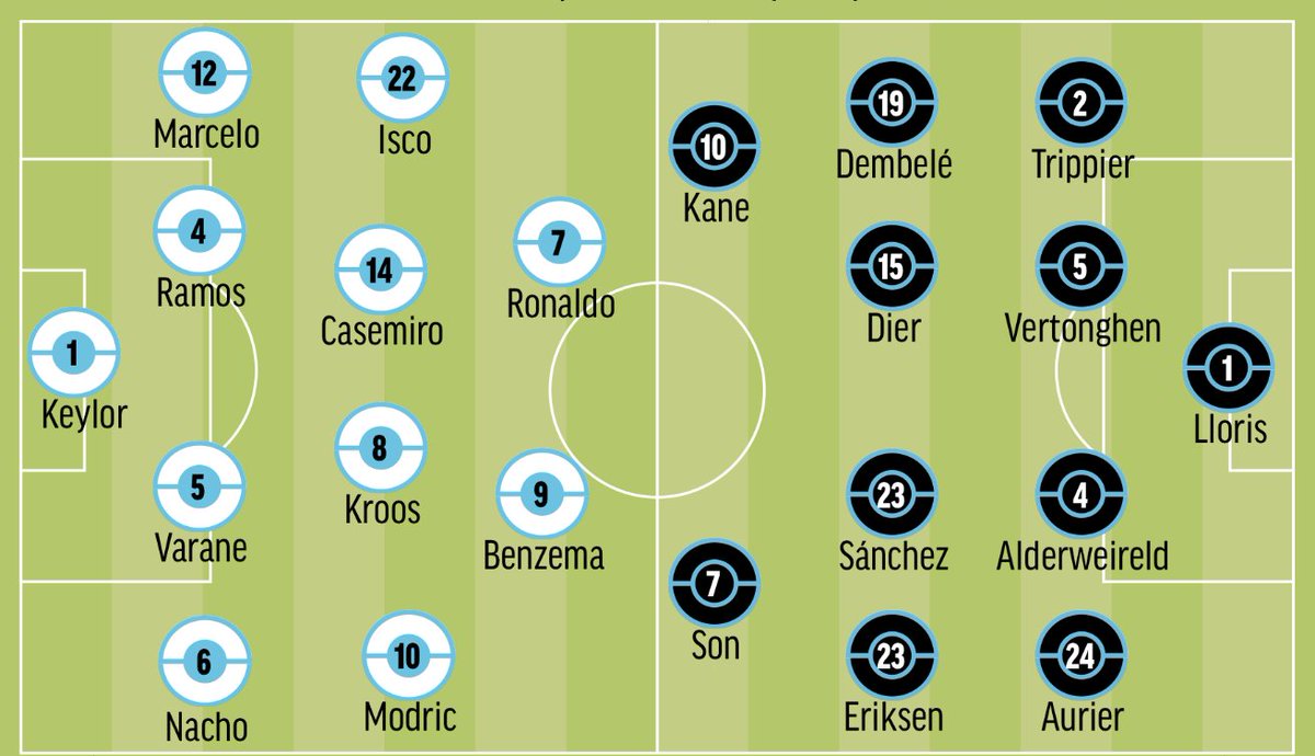 Tottenham's starting XI for tonight's Champions League clash with Real Madrid according to Spanish media