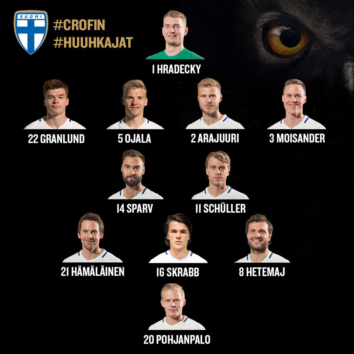 Avaukseen mahtui kaksi pelaajaa Veikkausliigasta, IFK mariehamnin laitapuolustaja Albin Granlund sekä HJK:ssa lainalla pelaava Rasmus Schüller. Kärjessä aloittaa edellisistä maaotteluista loukkaantumisen takia sivussa ollut Joel Pohjanpalo.