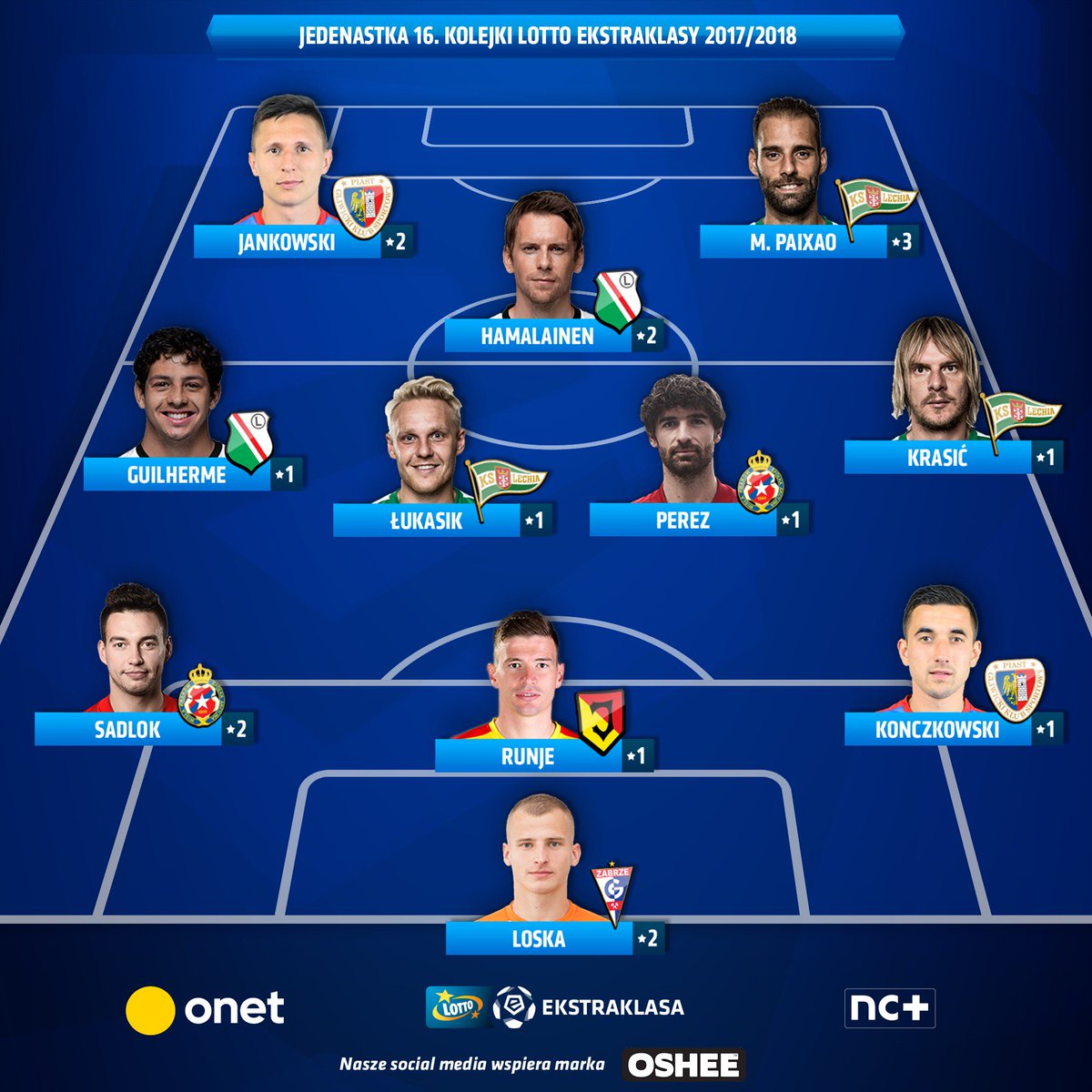 Huuhkajien Kasper Hämäläinen on valittu Puolan pääsarjan Ekstraklasan 11. kierroksen tähdistöjoukkueeseen. Hämäläinen viimeisteli kierroksella joukkueelleen Legia Varsovalle kauden toisen maalinsa.