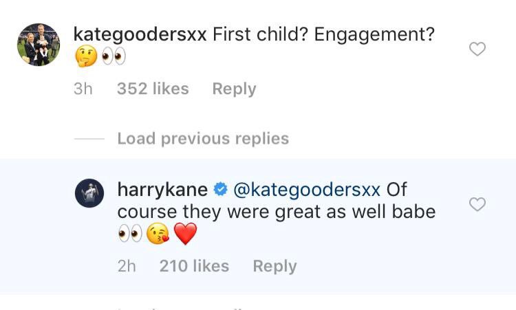 Tottenham-hyökkääjän kihlattu Kate Gooders uteli kuvan kommenttiosiossa, etä unohtuiko Kanelta kenties jotain.