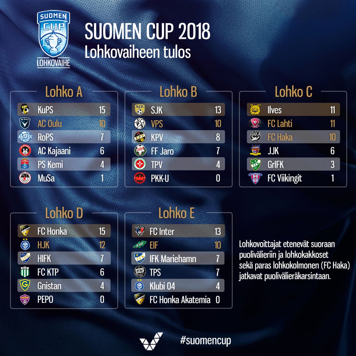 Lohkojen voittajat etenevät siis suoraan puolivälieriin ja puolivälieräkarsintoihin pääsevät lohkojen kakkoset sekä paras lohkokolmonen.
