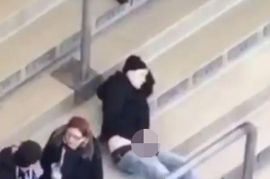 Saksalaisen Hertha Berlinin kannattaja ei kuitenkaan pysynyt jalkapallonautinnon edessä housuissaan. Hertha oli matkustanut lauantaina vieraspeliin Schalkea vastaan, ja mukana matkassa oli tietysti satoja Hertha-faneja. Yksi näistä päätti istahtaa ennen pelin alkua vieraiden katsomonosan kylmälle betonille, laski housunsa ja alkoi tyydyttää itseään.