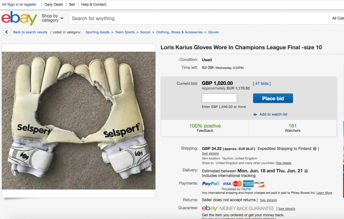 Katso: Antisankari Loris Kariuksen ”hanskoja” myydään eBay:ssä – hinta kohonnut jo tuhanteen euroon