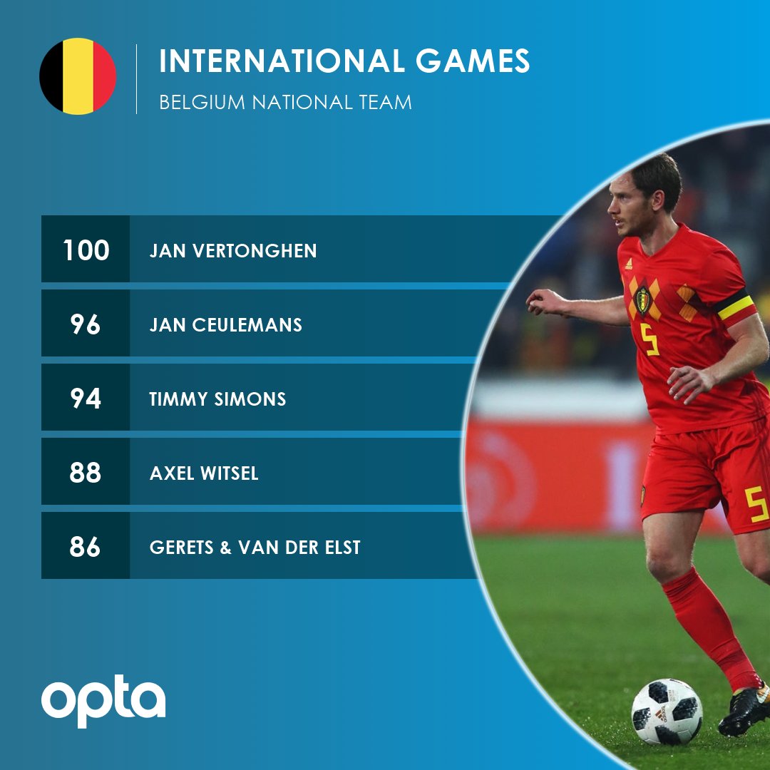 Tottenhamin puolustajasta Jan Vertonghenista tuli lauantaina ensimmäinen pelaaja, joka on esiintynyt sadassa ottelussa Belgian A-maajoukkueessa.
