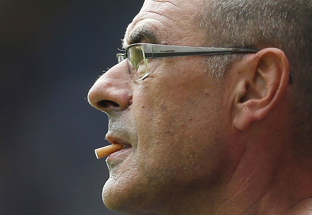 Kesällä lontoolaisten manageriksi siirtynyt Sarri tunnetaan ketjupolttajana, joka saattaa sauhutella tuttaviensa mukaan päivässä jopa 80 kertaa.