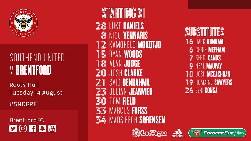 Dean makes 11 changes for tonight's trip to @SUFCRootsHall with competitive debuts for @ju_dpom, @mforss_ and Mads Sorensen @BrentfordFC #SNDBRE