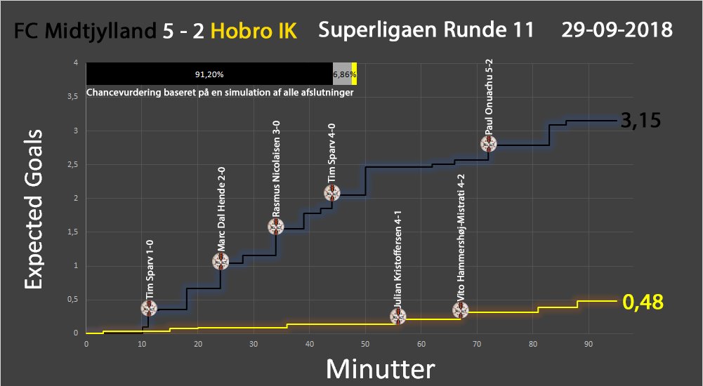 FC Midtjylland maste Hobro fra første fløjt, og havde et væld af afslutninger omkring det lille felt. Ikke så ofte man ser Tim Sparv have den højeste xG #fcmhob #sldk public.tableau.com/profile/tapinf…
