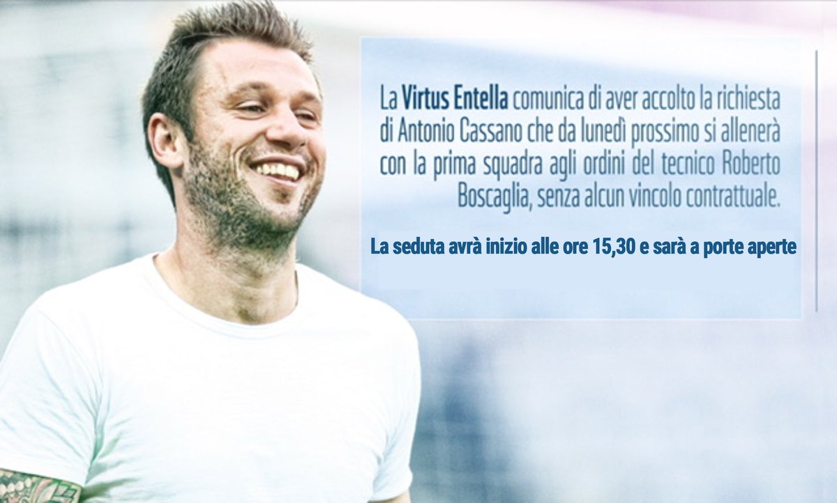 Italian miesten maajoukkueen entinen hyökkääjä Antonio Cassano aloittaa maanantaina harjoittelun maan kolmannella sarjatasolla, Serie C:ssä, pelaavassa Virtus Entellassa.