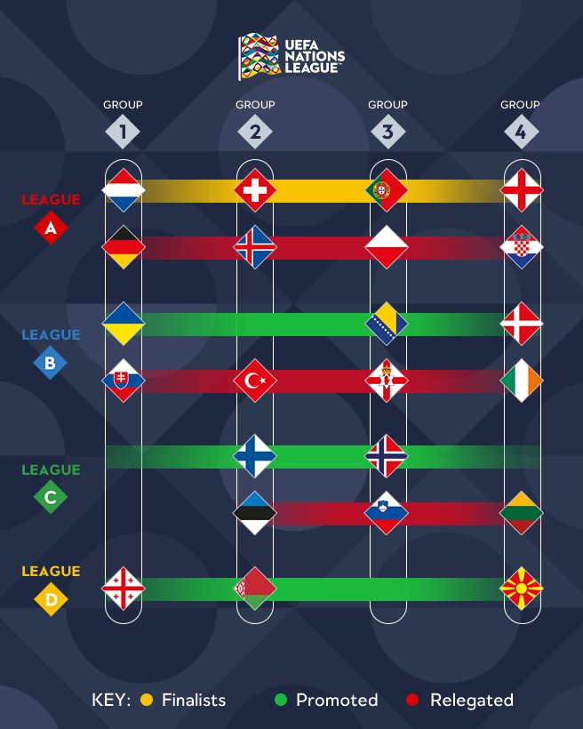 Reilut kaksi kuukautta kestänyt Nations League -rypistys tulee tiistai-iltana maaliinsa. Pikkuhiljaa selvillä alkavat olla niin nousijat kuin putoajatkin, mutta huiman jännittäviä pelejä on vielä edessä. Tässä katsaus viimeisen illan tapahtumiin.