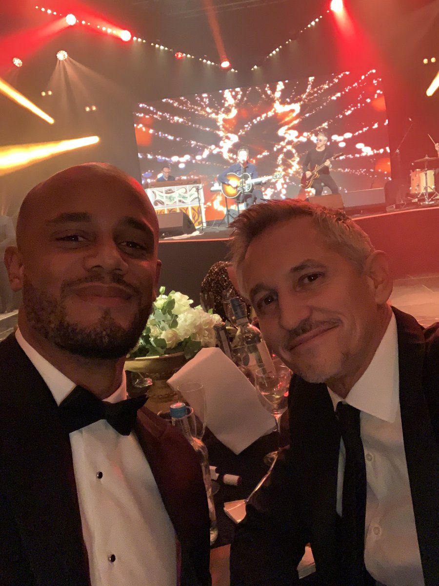 The moment @GaryLineker handed back to @VincentKompany his Belgium World Cup shirt after paying thousands of pounds for @tackle4mcr to help end rough sleeping in Manchester #class #tackle4mcr