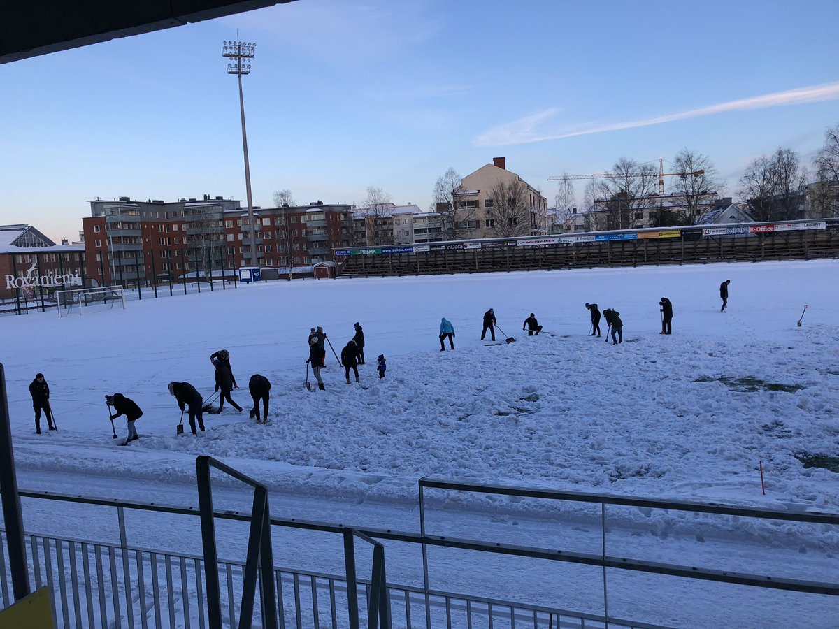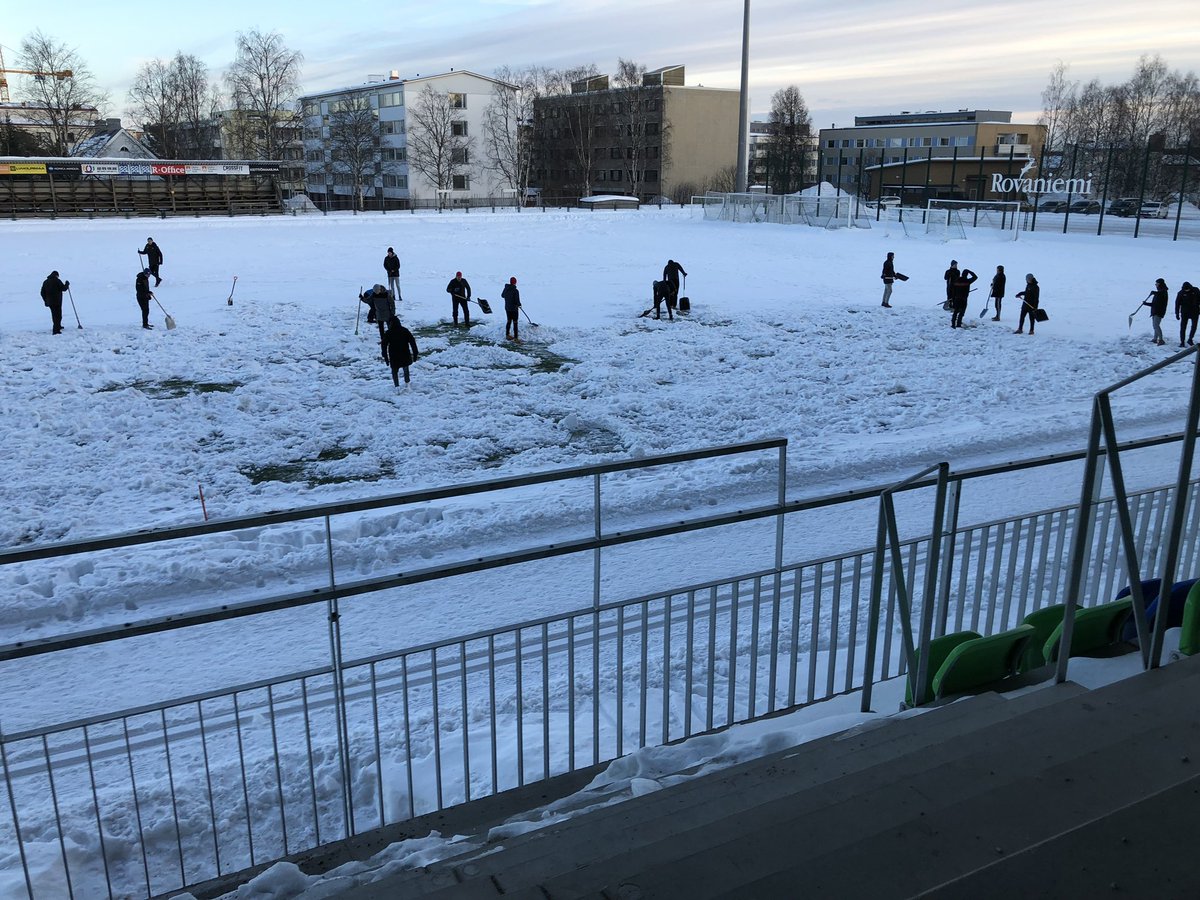 Napapiirillä on lunta, ja joskus hyvin kylmäkin. Ei siis ole ihan helppo nakki saada Rovaniemen keskuskenttä pelattavaan kuntoon ja pitää se sellaisena.