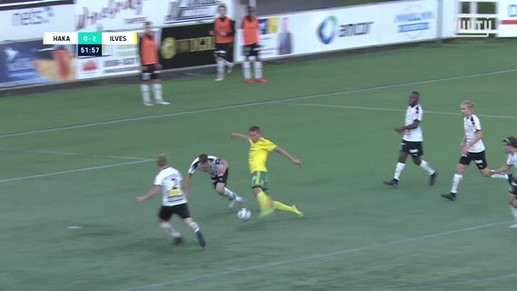 Ilves otti johtoaseman 36. minuutilla Mettälän maalilla, kun Haka-puolustus jätti hyökkääjälle liikaa tilaa rangaistusalueen sisällä. Mettälä viimeisteli varmasti etukulmasta pallon verkkoon.