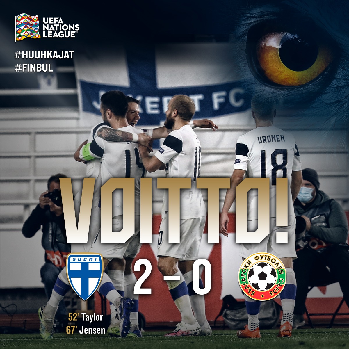 Suomi nappasi kolme pistettä Nations Leaguessa sunnuntaina, kun Bulgaria kaatui Olympiastadionilla lukemin 2-0. Arvokkaan voiton jälkeen Huuhkajat jatkaa oman lohkonsa kakkosena.