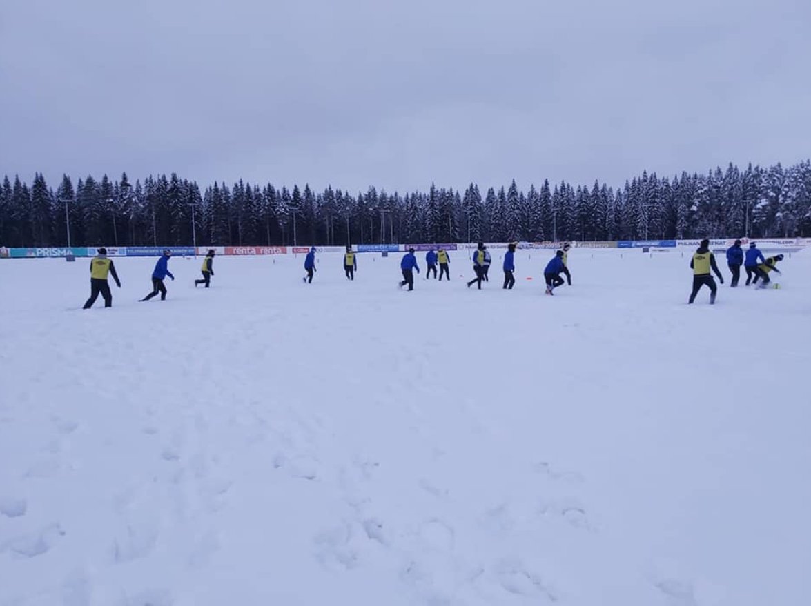 Jalkapalloiluun olosuhteet eivät ole erityisen suotuisat, ainakaan ulkona. Kaikki seurat etsinevät mahdollisuuksien mukaan harjoituspaikkoja halleista, sillä vaikka lämmitetyt tekonurmet saataisiinkin lumesta vapaaksi, asettaa pakkanenkin haasteitaan.