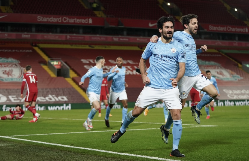 Manchester City sai loistavan paikan maalintekoon, kun peliä oli takana 37 minuuttia. Fabinho kaatoi Raheem Sterlingin rangaistusalueen sisällä ja ottelun erotuomari Michael Oliver näytti välittömästi rangaistuspotkua. İlkay Gündoğan asettui pallon taakse, mutta tuhri tuhannen taalan paikkansa laukomalla pallon taivaan tuuliin.