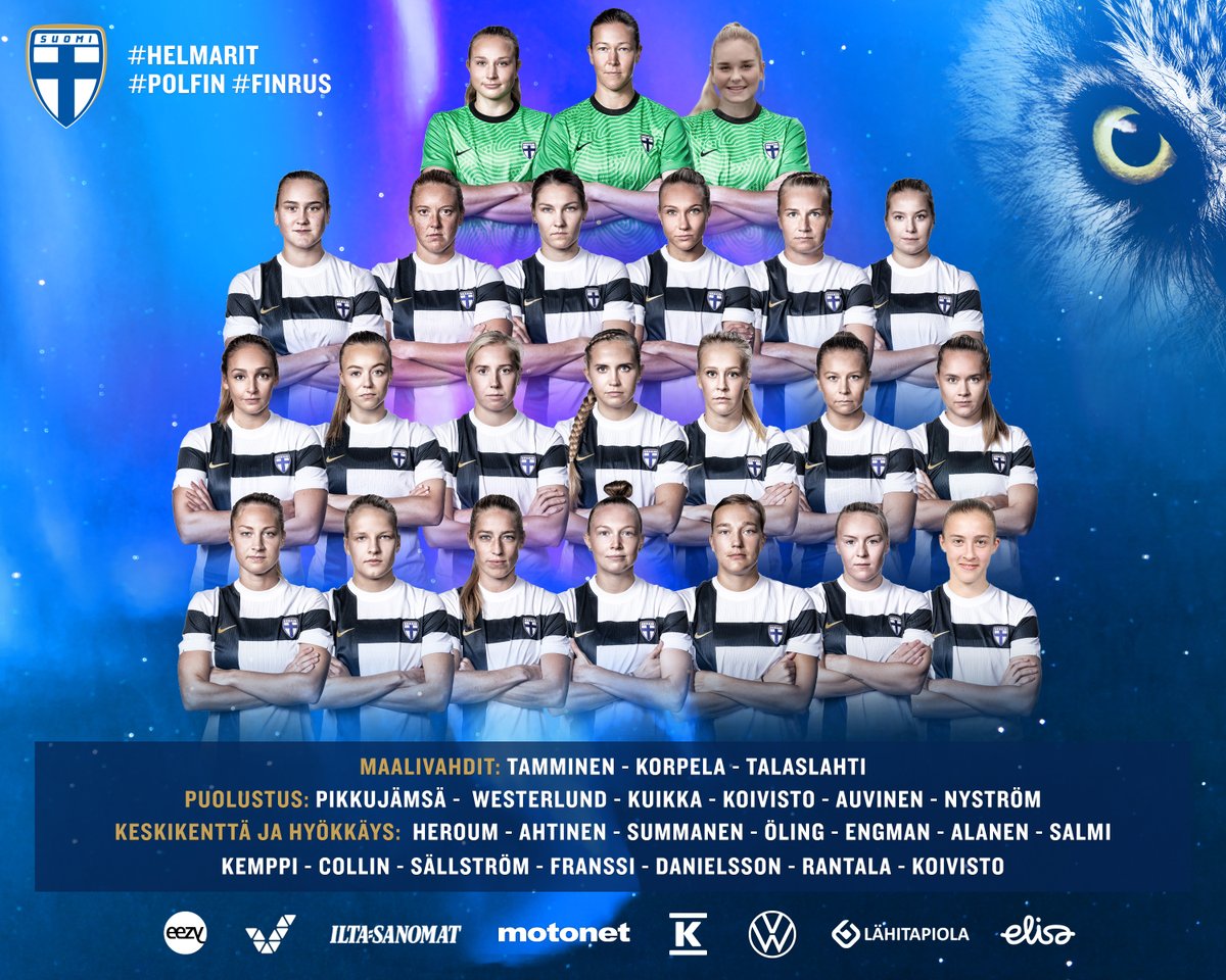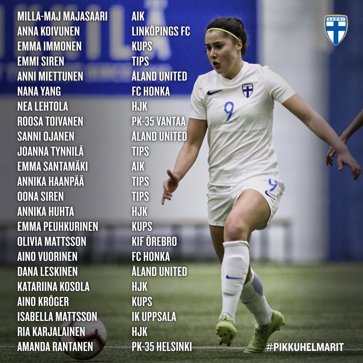 Tinja-Riikka Korpela, Everton FC Anna Tamminen, Hammarby IF Katriina Talaslahti, Olympique Lyonnais Natalia Kuikka, Portland Thorns Anna Westerlund, Åland United Anna Auvinen, Inter Milan Elli Pikkujämsä, KIF Örebro Eva Nyström, Hammarby IF Emma Koivisto, Brighton and Hove Albion Nora Heroum, Brighton and Hove Albion Eveliina Summanen, Kristianstads DFF Emmi Alanen, Växjö DFF Olga Ahtinen, Linköpings FC Ria Öling, FC Rosengård Adelina Engman, Montpellier Hérault SC Jenny Danielsson, AIK Iina Salmi, Valencia CF Linda Sällström, FC Paris Féminines Kaisa Collin, Eskilstuna United Juliette Kemppi, London City Lionesses Jutta Rantala, Kristianstads DFF Sanni Franssi, Real Sociedad Vilma Koivisto, Umeå IK