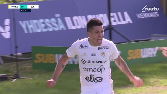 Ottelun ainoa maali syntyi 91. minuutilla tilanteesta, joka herätti Hongan leirissä runsaasti tunteita. SJK purki kulmapotkusta pallon keskikentälle, Hongan Nasiru Banahene oli palauttamassa pelivälinettä takaisin vieraiden maalille, kun Emmanuel Ledesma riisti sen häneltä ja pääsi keskiympyrästä läpiajoon. Pitkän kuljetuksensa päätteeksi Ledesma sijoitti kuulan alanurkkaan.
