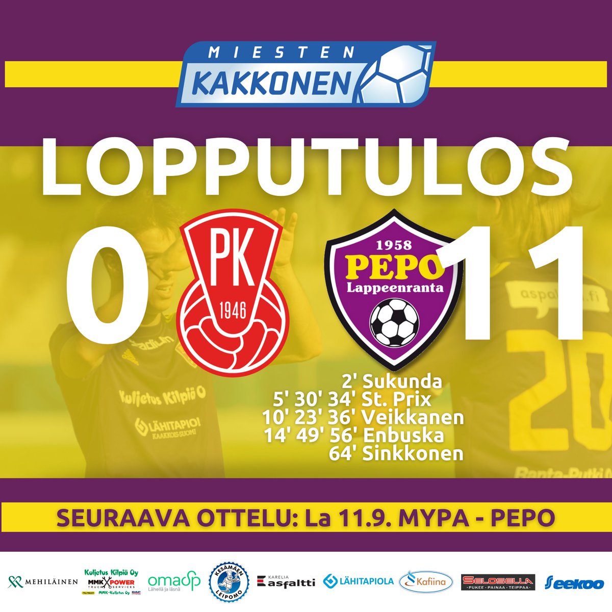 Miesten Kakkosen A-lohkossa nähtiin aikamoiset murskajaiset. Lohkossa viimeisenä majaileva Mikkelin Pallo-Kissat isännöi lohkokakkosta PEPO:a Lappeenrannasta.