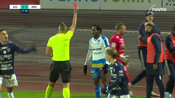 RoPS on pulassa liigakarsinnoissa - Acheampong katselee punaista korttia puolen tunnin kohdalla #ruutu #veikkausliiga #ykkönen #jalkapallo ruutu.fi/video/3973788