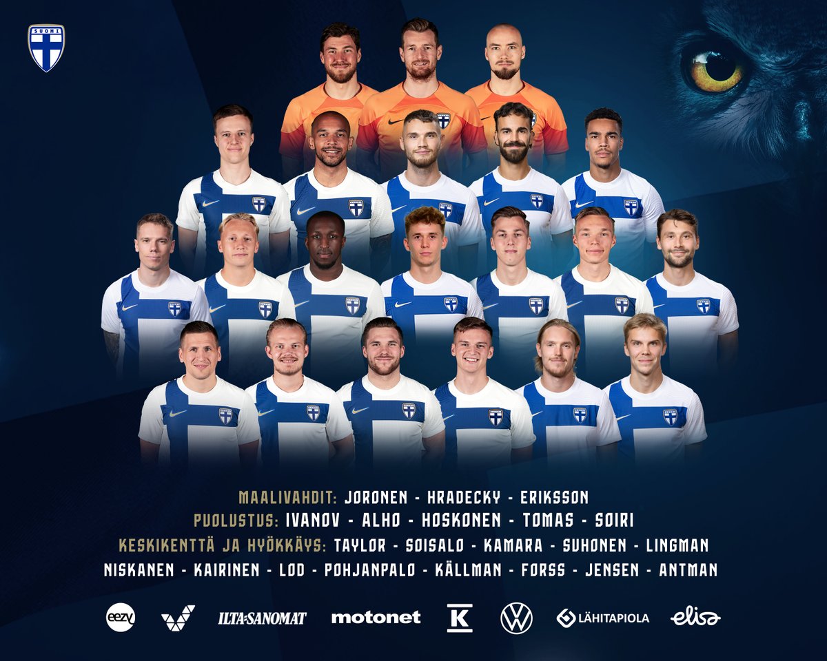 Keskikentän kaksikko on kärsinyt jalkavaivoista. Uusina pelaajina Huuhkajiin korvaajiksi nimettiin Karlsruheria Saksassa edustava toppari Daniel O’Shaugnessy, Cosenzan toppari Sauli Väisänen ja HJK:n laituri Santeri Hostikka.