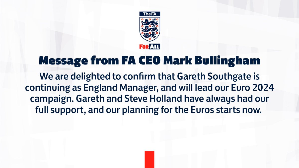 Southgaten nykyinen sopimus kattaa seuraavat EM-kisat, jotka pelataan Saksassa kesällä 2024. EM-karsinnat käynnistyvät maaliskuussa.
