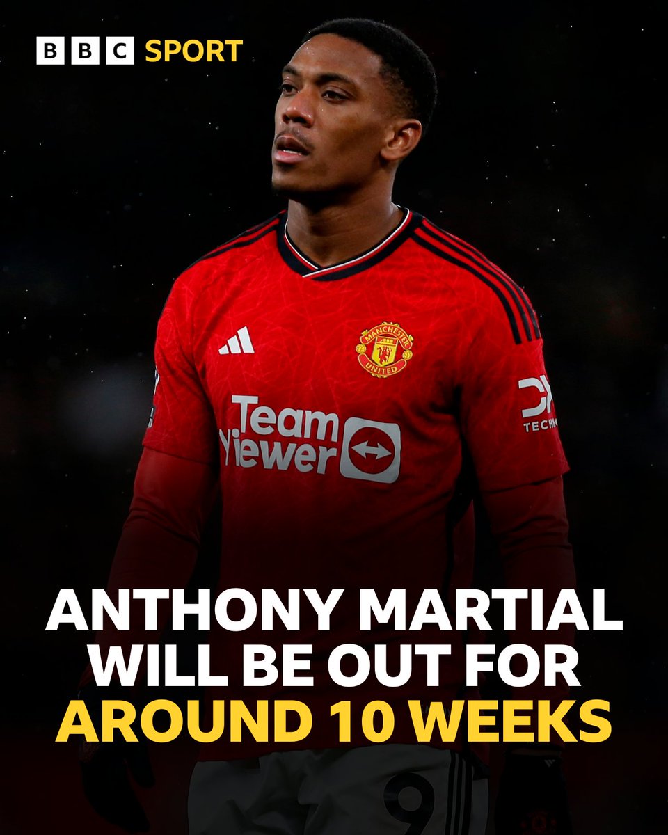Manchester Unitedin hyökkääjää Anthony Martialia odottaa kymmenen viikon tauko tositoimista hänen käytyä nivusleikkauksessa.