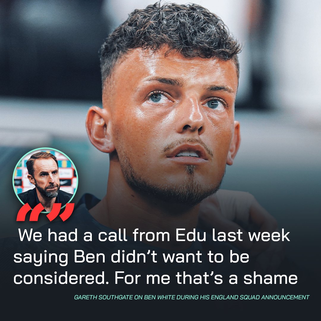Englannin miesten päävalmentaja Gareth Southgate on kertonut, että Arsenalin puolustaja Ben White ei halua maajoukkueeseen.